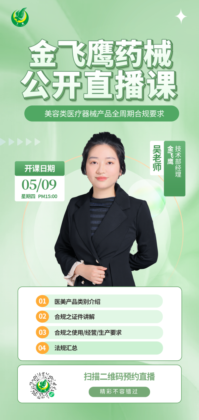 金飛鷹直播培訓,是每周一次的固定培訓欄目,優選金飛鷹國內外資深注冊/項目老師定期為大家講解醫療器械注冊相關知識,解答大家在醫療器械注冊過程中的諸多疑問。