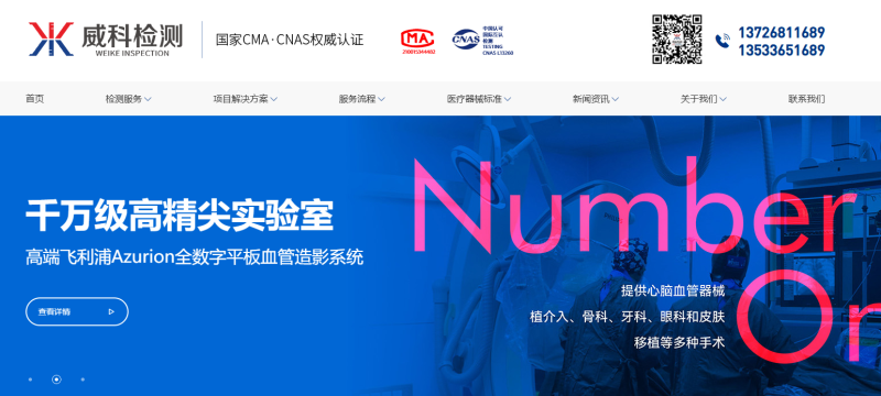威科檢測(蘇州)有限公司隸屬于威科檢測集團,全國實驗室布局立足廣東,輻射北京、江蘇、重慶和上海,實驗室設有大動物實驗中心、醫療器械檢測中心、生物學評價中心、毒理實驗中心、病理實驗中心、微生物檢測中心、潔凈環境檢測中心和血液檢測中心,實驗室參照ISO/IEC 17025和GLP of OECD建立實驗室管理體系并獲有國家級CMA、省級CMA、CNAS資質認證以及動物使用許可證資質。并在廣州、江蘇、湖南、廣西、江西等地區建設多個全資子公司。威科依據CNAS-CL01:2018《檢測和校準實驗室能力認可準則》及相關認可應用準則、《檢驗檢測機構資質認定能力評價 檢驗檢測機構通用要求》、《檢驗檢測機構資質認定能力評價 醫療器械檢驗機構要求》建立質量管理體系,依照GLP準則管理要求運行動物實驗室,取得CNAS實驗室認可資質,國家CMA資質,廣東省CMA資質和動物使用許可證資質。威科檢測具有專業的檢驗技術團隊和業務運營團隊,配置了先進精準的檢測設備,實驗室面積約11000平方米,環境設施包括大動物實驗中心、SPF級動物房、病理檢測室、化學表征分析實驗室、微生物實驗室、醫療器械性能檢測實驗室等。威科檢測專注于生物醫藥檢驗領域,提供生物學評價試驗、大動物實驗研究、化學表征測試、微生物檢測、消毒滅菌驗證、理化性能檢測、潔凈室檢測、包裝驗證、老化試驗、運輸實驗、體系認證等服務,致力于共創生物醫藥檢測服務創新平臺,促進醫療器械產業實現高質量發展。