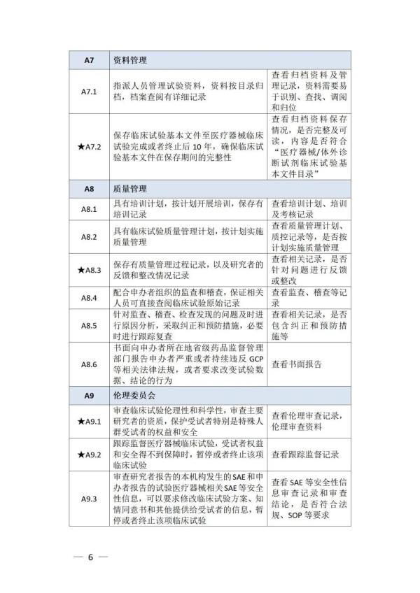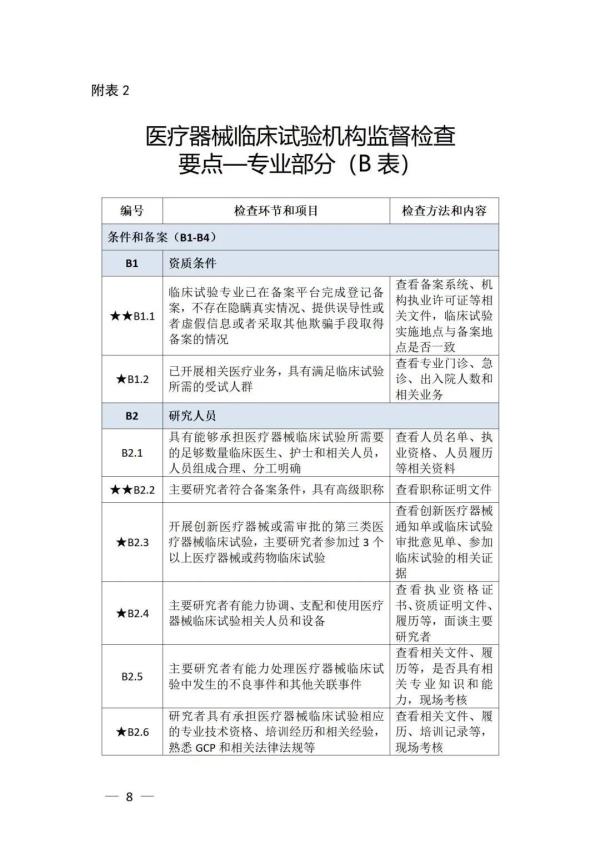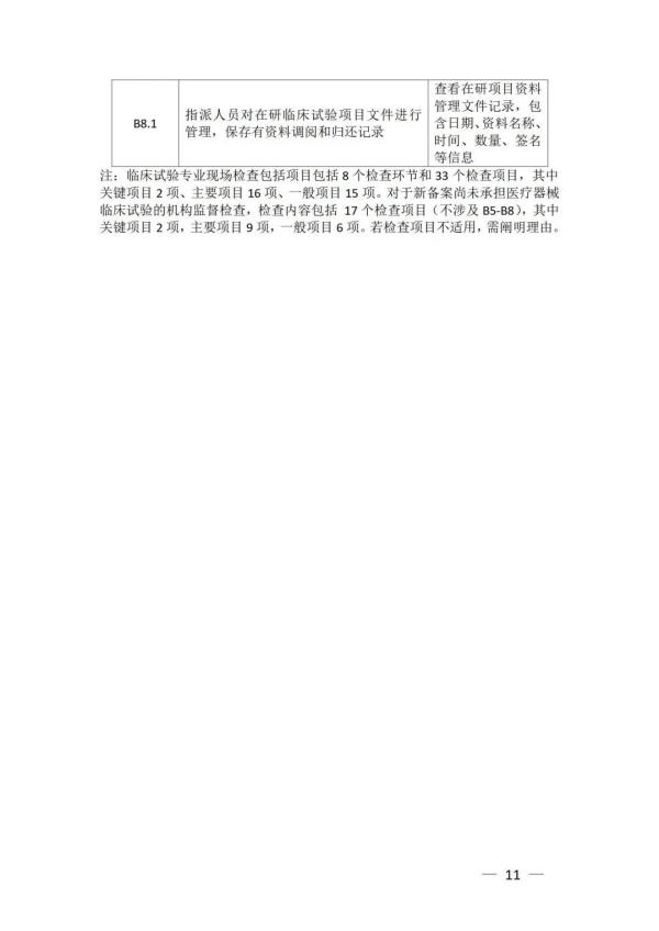 《檢查要點》指出,檢查內容分為機構和臨床試驗專業兩部分,包括17個檢查環節、78個檢查項目,包括對條件與備案管理、運行情況等方面的現場檢查內容。檢查項目中關鍵項目共計8項(標示為“★★”),主要項目共計34項(標示為“★”),一般項目共計36項。其中8項關鍵項目具體如下:
