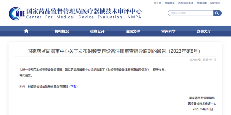 ※定了!《射頻美容設備注冊審查指導原則》正式發布!