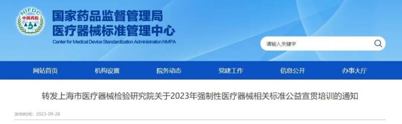 近日,中檢院官網轉發了上海市醫療器械檢驗研究院關于2023年強制性醫療器械相關標準公益宣貫培訓的通知,擬定于2023年10月9日舉辦相關歸口醫療器械標準宣貫培訓,對YY 9706.230-2023《醫用電氣設備第2-30部分:自動無創血壓計的基本安全和基本性能專用要求》YY 9706.261-2023《醫用電氣設備第2-61部分:脈搏血氧設備的基本安全和基本性能專用要求》等11項醫療器械強制性標準進行宣貫。