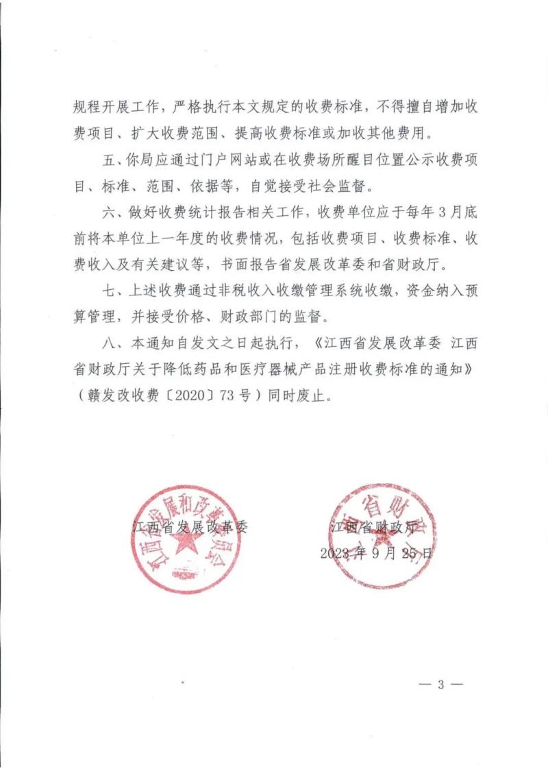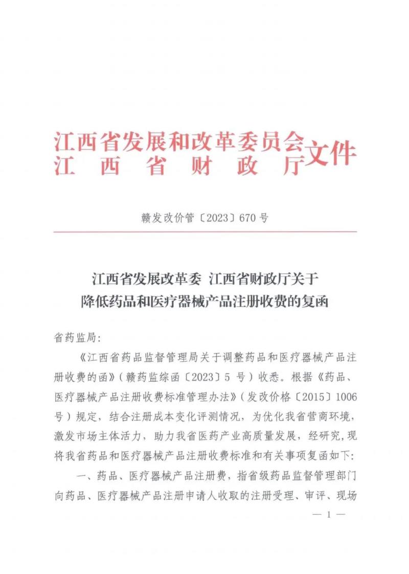 近日,江西省發展和改革委員會官網發布《江西省發展改革委江西省財政廳關于降低藥品和醫療器械產品注冊收費的復函》,其中指出,藥品、醫療器械產品注冊收費標準按現行規定標準的70%收取,調整后具體標準如下: