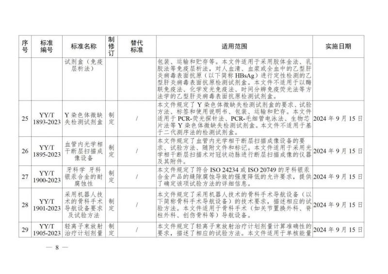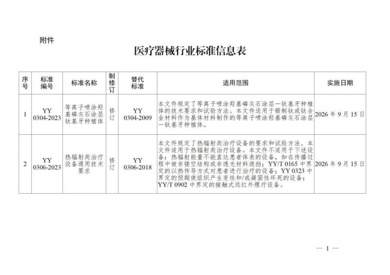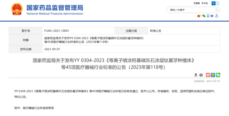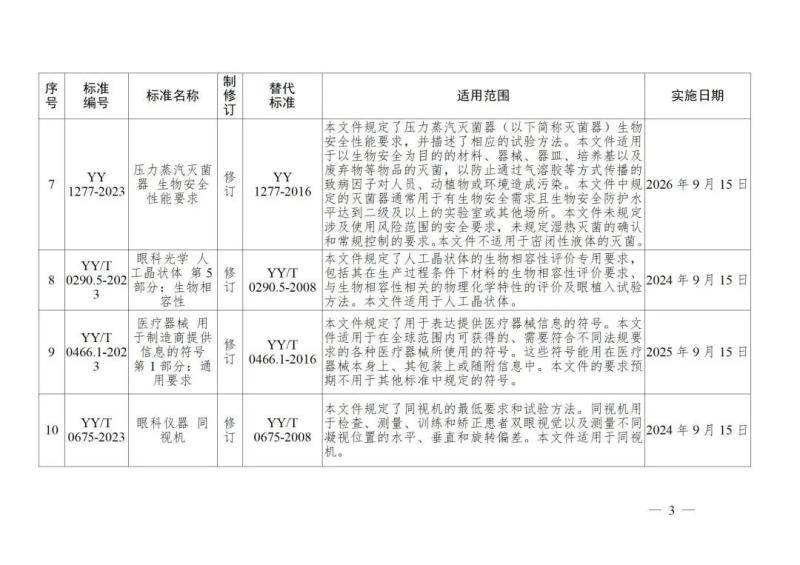 近日,國家藥監局官網發布YY 0306-2023《熱輻射類治療設備通用技術要求》、YY/T 0290.5-2023《眼科光學 人工晶狀體 第5部分:生物相容性》等45項醫療器械行業標準,其中27項制定,18項修訂,最早的自2024年3月15日起實施,具體明細如下:
