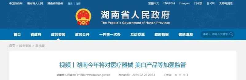 2月28日,湖南省人民政府發布一則視頻,其中提到,據湖南省藥品監管局發布,今年(2024年),全省藥品監管部門將聚焦突出問題和薄弱環節,堅持對生化藥品、兒童用藥、防疫用藥、集采中選藥品和醫療器械、美白產品重點品種、重點企業、重點環節加強監管。
