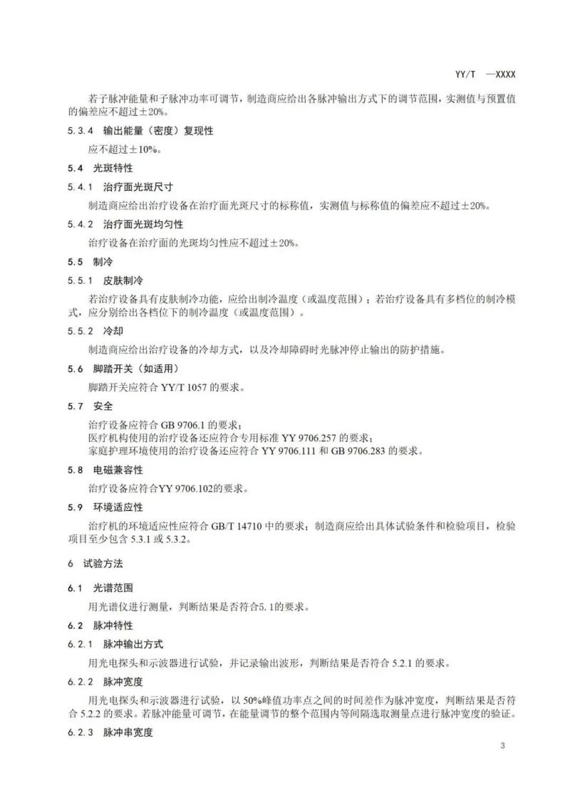 我們將其中《強脈沖光治療設備》標準草案轉載如下:
