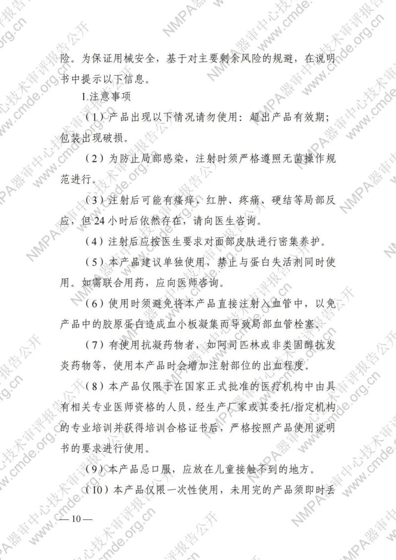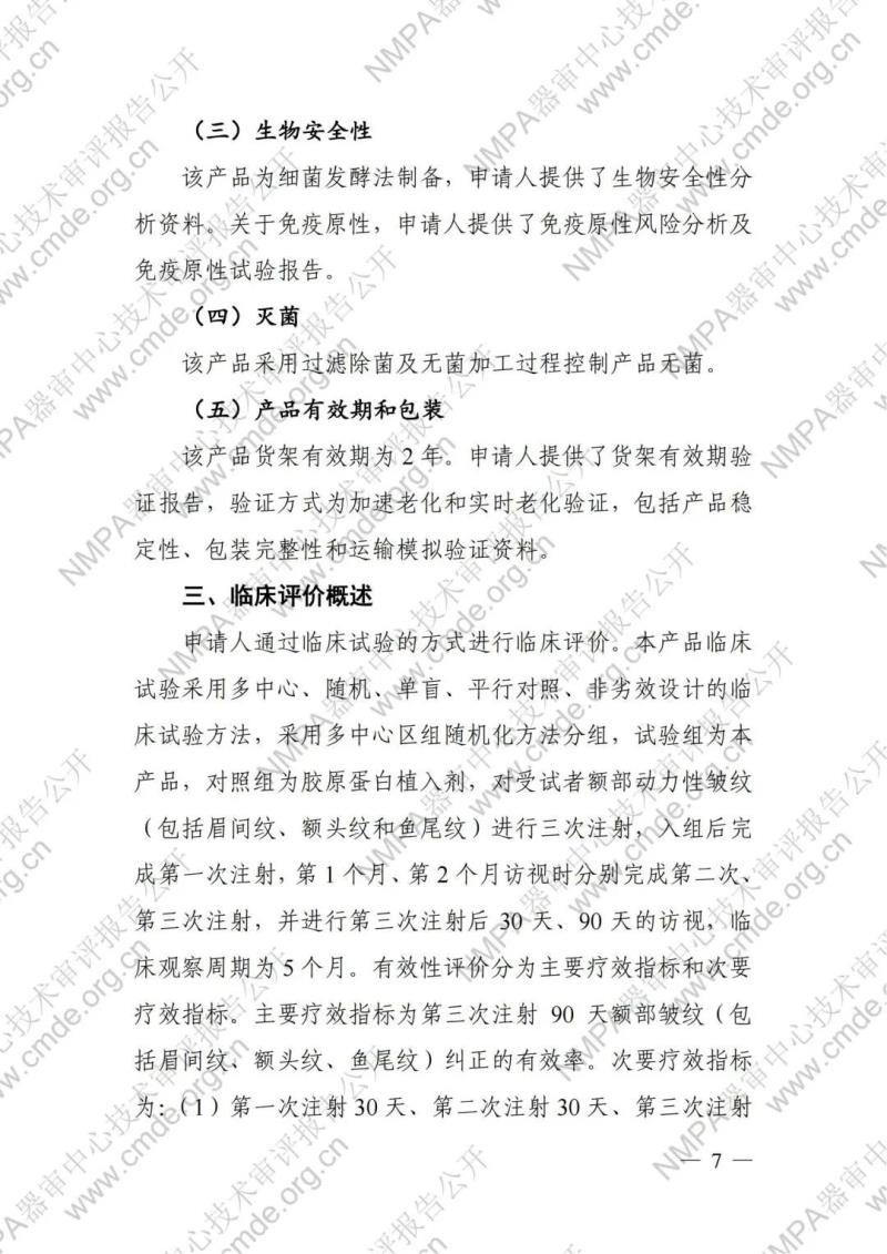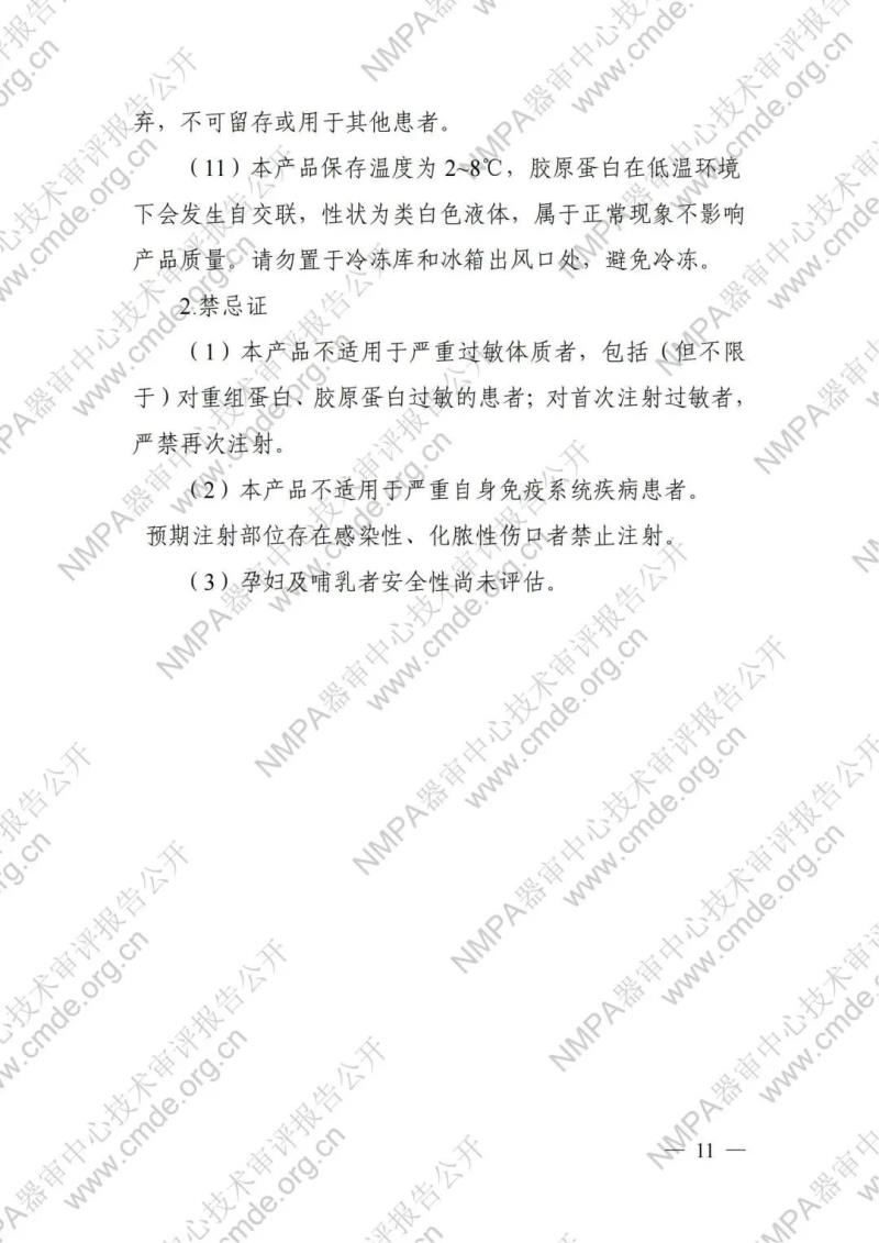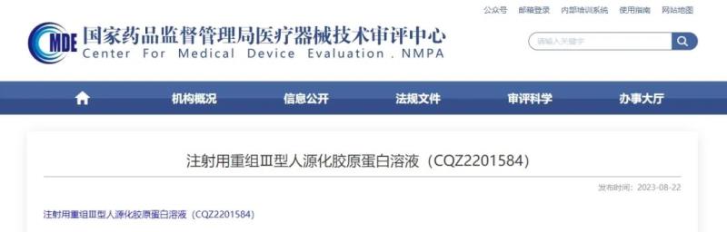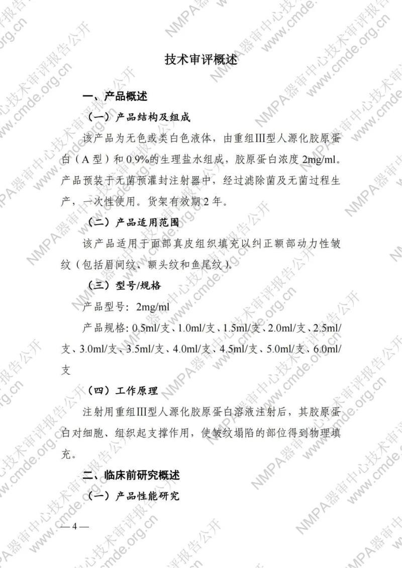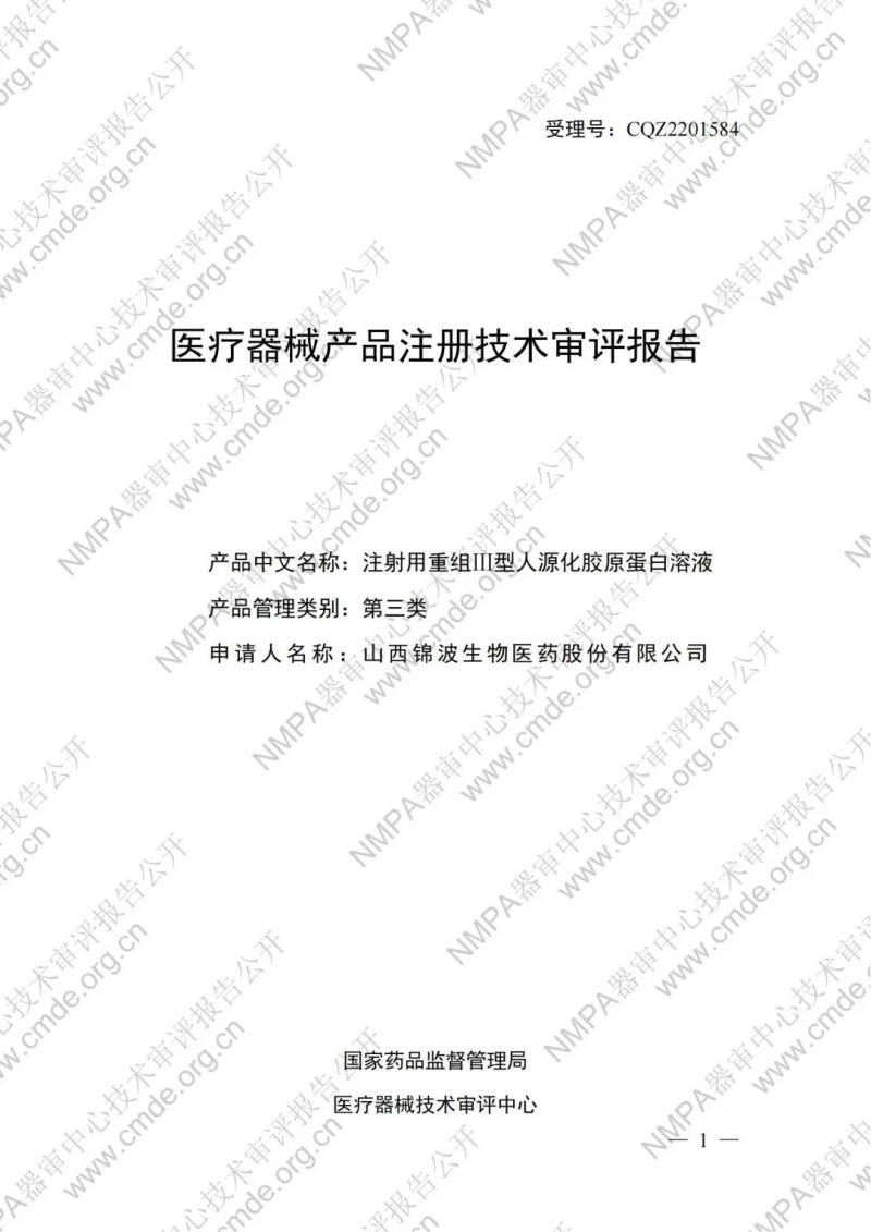 近日,國(guó)家藥監(jiān)局器審中心公開了創(chuàng)新醫(yī)療器械“注射用重組Ⅲ型人源化膠原蛋白溶液”的審評(píng)報(bào)告,我們將其以圖片形式轉(zhuǎn)載如下: