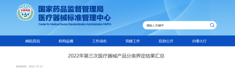 10月27日,國家藥監局醫療器械標管中心發布2022年第三次醫療器械產品分類界定結果匯總,前兩次分類界定結果請點擊下方鏈接查看 ?