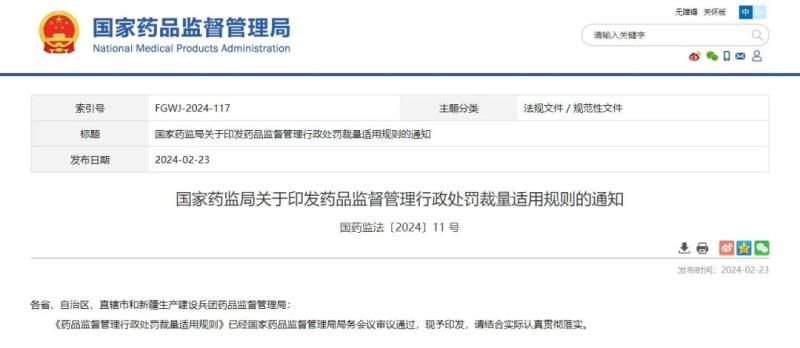近日,國家藥監局發布《藥品監督管理行政處罰裁量適用規則》(以下簡稱《規則》),并宣布2024年8月1日起施行。