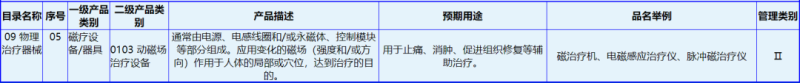 跟穴位磁療貼一樣,磁場綜合治療系統(tǒng)也是屬于磁療產(chǎn)品這個大類,它在我國作為第二類醫(yī)療器械管理,產(chǎn)品分類編碼09-05-01。