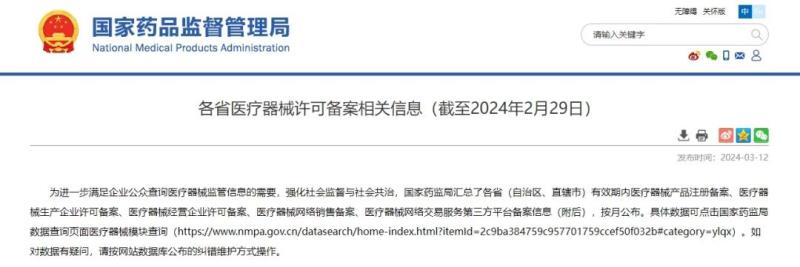 3月12日,國(guó)家藥監(jiān)局公布了截至2024年2月29日各省有效期內(nèi)醫(yī)療器械產(chǎn)品注冊(cè)備案、醫(yī)療器械生產(chǎn)企業(yè)許可備案等信息,老規(guī)矩,金飛鷹小編對(duì)此稍作編輯,標(biāo)注紅色、綠色、黃色的分別為前三甲。
