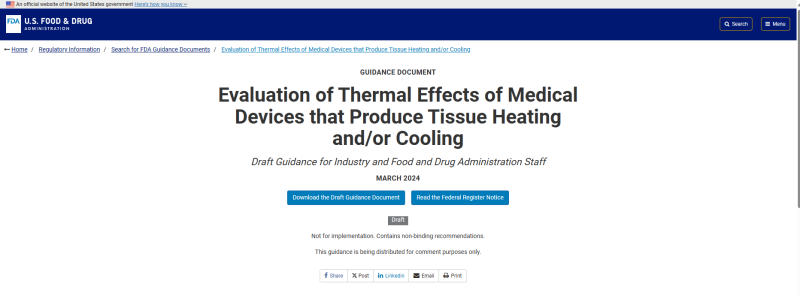 FDA(美國食品藥品監督管理局)近日發布了一份重要的指南草案,專門針對那些能夠產生組織加熱和/或冷卻效應的醫療器械的熱效應評估進行了詳細闡述。