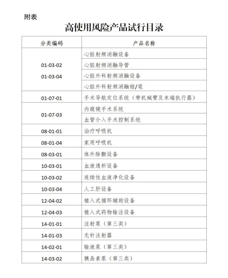 一、對于擬申請注冊的醫療器械產品,高使用風險醫療器械按照目錄(詳見附件,均為第三類醫療器械)管理,列入目錄的產品提交可用性工程研究報告。對于其余第二、三類醫療器械,若相應產品指導原則有可用性或可用性相關要求(如模擬使用等),則按其要求提交相應注冊申報資料;其他情況均按照中、低使用風險醫療器械要求提交使用錯誤評估報告。