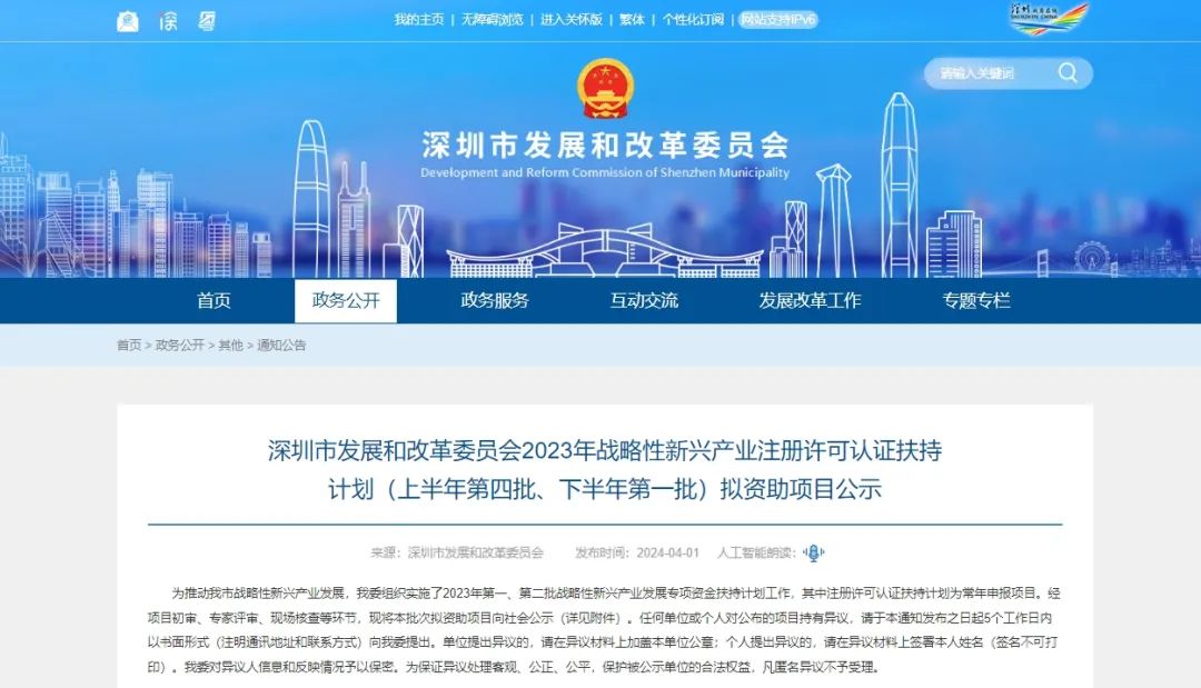 去年5月,深圳市發展和改革委員會(以下簡稱“深圳發改委”)官網發布《2023年戰略性新興產業專項資金項目申報指南(第一批)的通知,其中提到的支持領域包括半導體與集成電路、超高清視頻顯示、儲能、低碳零碳負碳、智能網聯汽車、高端醫療器械、大健康等領域。扶持計劃則包含市級工程研究中心組建及提升項目、公共服務平臺組建及提升項目、產業化事后補助、新技術新產品示范應用推廣、注冊許可認證、國家項目配套等類別。其中注冊許可認證扶持計劃為常年申報項目。