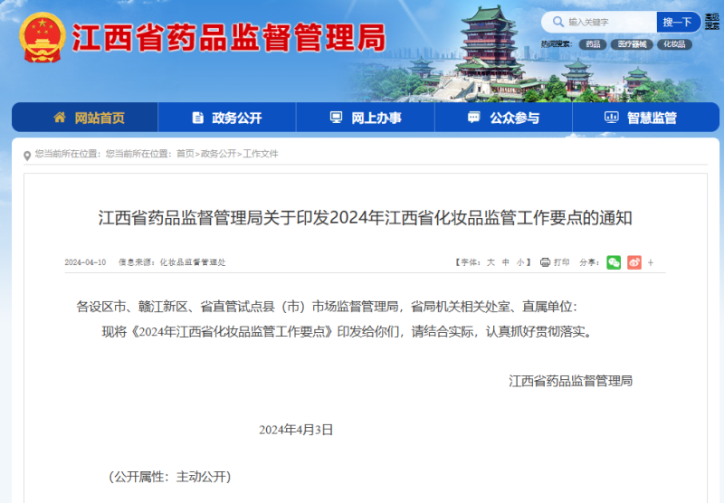 2024年江西省化妝品監管工作將堅守安全底線,全面強化監管措施,推動化妝品產業持續健康發展。我們堅決實施“妝安行動”,通過規范化妝品經營行為、強化專項檢查和推進分級管理,切實保障公眾用妝安全。
