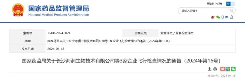 4月18日,國家藥監局發布通告稱,近期組織對長沙海潤生物技術有限公司等3家企業進行飛行檢查,發現這些企業質量管理體系主要存在以下缺陷: