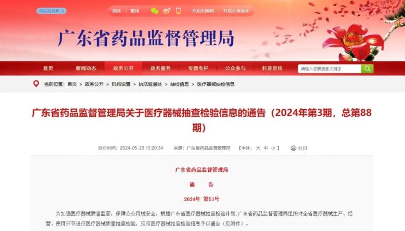 5月20日,廣東省藥監(jiān)局發(fā)布《關(guān)于醫(yī)療器械抽查檢驗(yàn)信息的通告(2024年第3期,總第88期)》(以下簡(jiǎn)稱(chēng)《通告》),《通告》顯示,該局共抽檢了130批次產(chǎn)品,共有6批次不合格,不合格產(chǎn)品包括消融電極、一次性使用無(wú)菌陰道擴(kuò)張器、醫(yī)用防護(hù)口罩,具體如下: