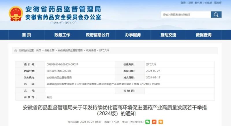 5月27日,安徽省藥監(jiān)局發(fā)布《關于持續(xù)優(yōu)化營商環(huán)境促進醫(yī)藥產業(yè)高質量發(fā)展若干舉措(2024版)》(以下簡稱《若干舉措》),其中提到:
