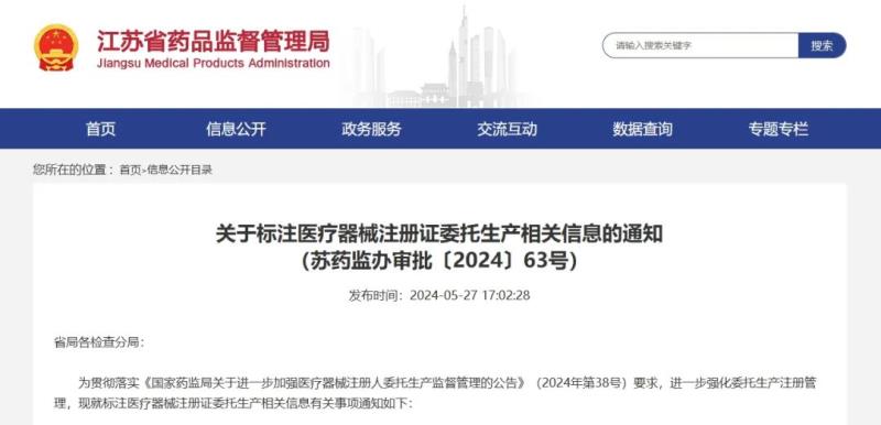 二、對省內已核發的涉及境內委托生產的注冊證,若未按照上述要求標注相關信息,省局在醫療器械行政審批系統中增加了第二類醫療器械(含體外)注冊證受托生產企業統一社會信用代碼標注模塊,注冊人應通過登錄江蘇政務服務網(網址:https://www.jszwfw.gov.cn/),進入“省藥品監管局旗艦店”中的“智慧政務服務平臺”,于2024年9月1日前完成標注。具體操作見附件。
