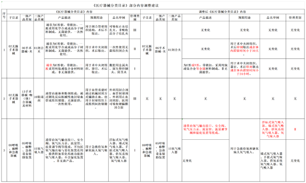 以上僅以圖片形式對本次擬調整的《醫療器械分類目錄》內容進行展示,如需查看表格文件,請點擊“閱讀原文”。