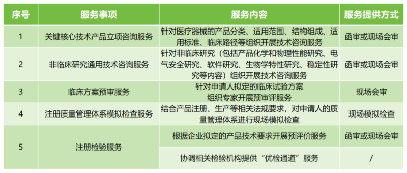廣州市醫療器械創新技術服務事項包括以下五種類型
