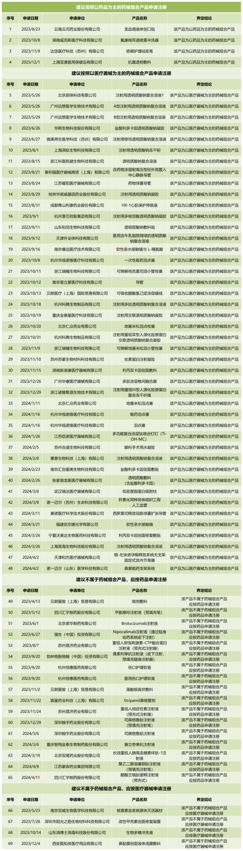 官方發布丨69款藥械組合產品屬性界定結果匯總