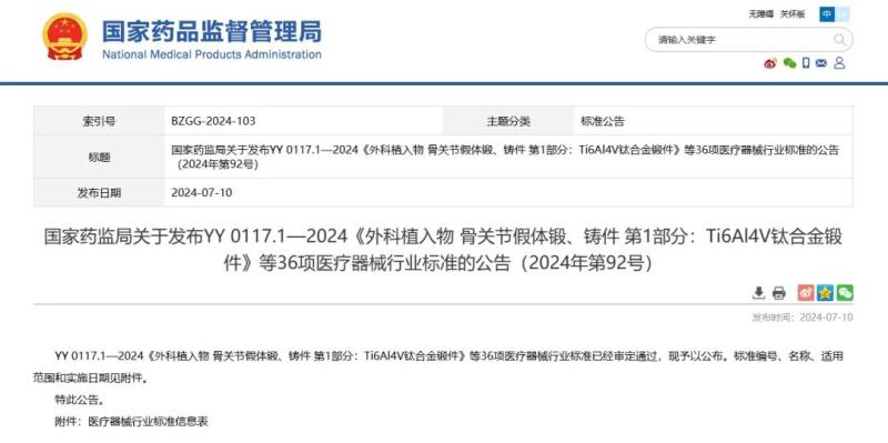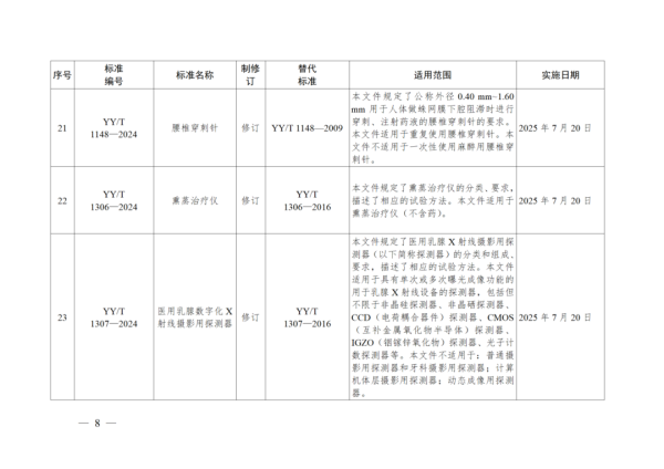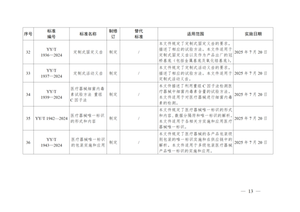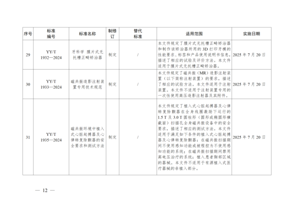7月10日,國家藥監局發布YY/T 1936-2024《定制式固定義齒》、YY/T 1937-2024《定制式活動義齒》、YY/T 1932-2024《牙科學 膜片式無托槽正畸矯治器》等36項醫療器械行業標準,其中24項為修訂,12項為修訂,最早自2025年7月20日起實施,具體清單如下: