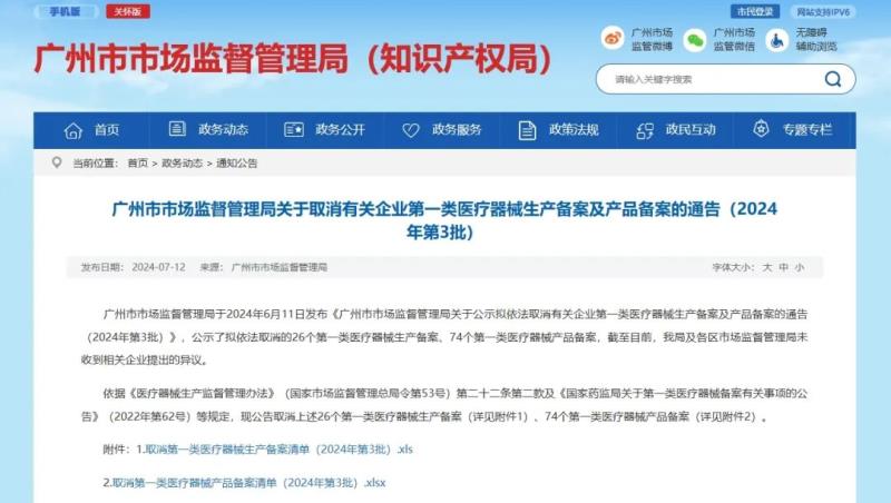 廣州市場監(jiān)管局:以下74個(gè)第一類醫(yī)械產(chǎn)品備案已被取消!