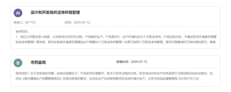 根據北京市藥監局的答復,產品研發環境要求,取決于研發過程的內容。研發活動中所生產的樣品用于注冊檢驗及臨床試驗的,應符合《醫療器械生產質量管理規范》及相關附錄的要求,在對應生產潔凈級別要求的潔凈環境中生產。