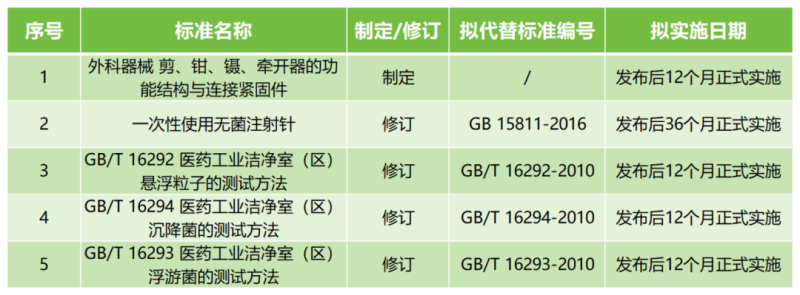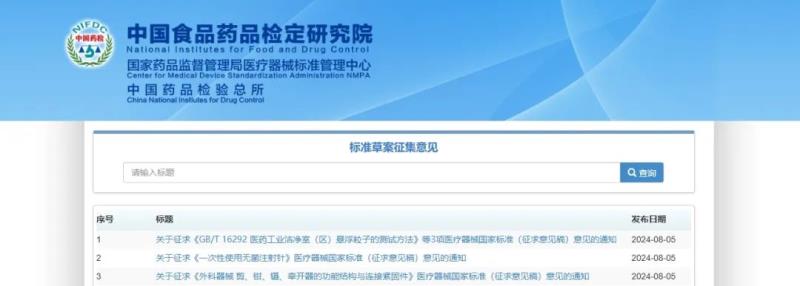 8月5日,國家藥監局醫療器械標準管理中心發布幾則關于征求醫療器械國家標準意見的通知,通知顯示,近期共有5項標準形成了征求意見稿,具體明細如下: