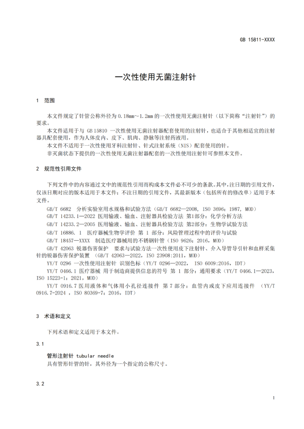 我們將《一次性使用無菌注射針》征求意見稿正文內容以圖片形式轉載如下: