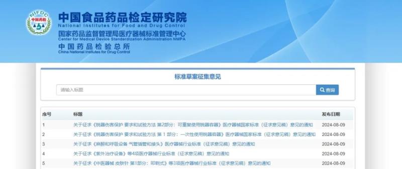 8月9日,國(guó)家藥監(jiān)局醫(yī)療器械標(biāo)準(zhǔn)管理中心發(fā)布幾則關(guān)于征求醫(yī)療器械行業(yè)標(biāo)準(zhǔn)意見的通知,通知顯示,近期共有10項(xiàng)標(biāo)準(zhǔn)形成了征求意見稿,具體明細(xì)如下: