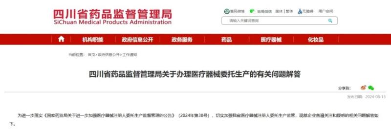答:涉及生產范圍變化的,受托生產企業按程序取得醫療器械生產許可證或完成生產許可變更即獲得受托生產證明文件;對于不涉及生產范圍變化的,受托生產企業向省藥監局提交受托生產報告后,省藥監局向受托生產企業出具受托生產證明文件。