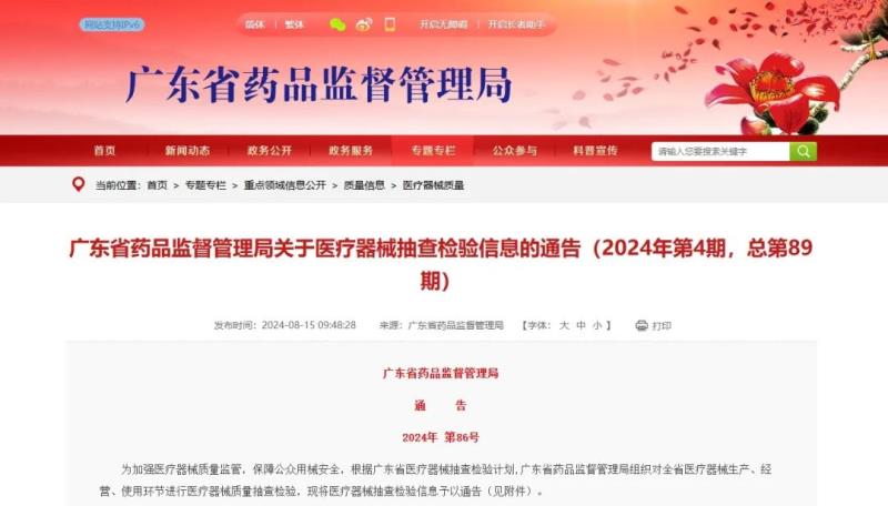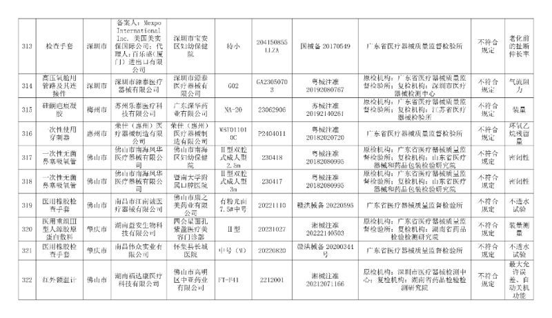 8月15日,廣東藥監局發布《關于醫療器械抽查檢驗信息的通告(2024年第4期,總第89期)》,我們通過查看通告中的附件發現,本次共抽查檢驗了322批次產品,其中有10批次不符合規定,包括醫用重組Ⅲ型人源膠原蛋白敷料、硅酮疤痕凝膠、一次性無菌鼻塞吸氧管、紅外額溫計等產品,不符合規定產品具體明細如下: