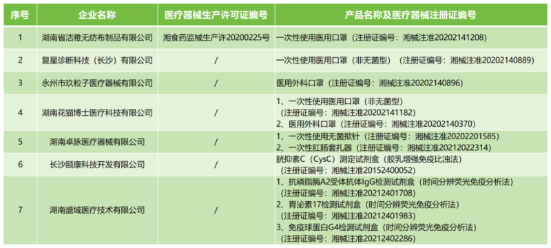 8月26日,湖南省藥監(jiān)局發(fā)布公告稱,按照《醫(yī)療器械監(jiān)督管理條例》《醫(yī)療器械生產(chǎn)監(jiān)督管理辦法》有關(guān)規(guī)定,根據(jù)企業(yè)申請,現(xiàn)注銷湖南省潔雅無紡布制品有限公司的醫(yī)療器械生產(chǎn)許可證和醫(yī)療器械注冊證;注銷復星診斷科技(長沙)有限公司6家企業(yè)的10個產(chǎn)品的醫(yī)療器械注冊證,具體明細如下: