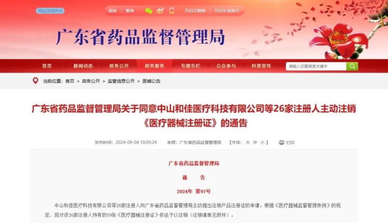 廣東藥監(jiān)局:以下26家企業(yè)已主動注銷其醫(yī)療器械注冊證!