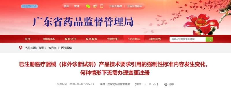 上述兩種情形下,產品技術要求不發生變化或者僅更新引用的標準編號和/或年代號,無需辦理變更注冊。