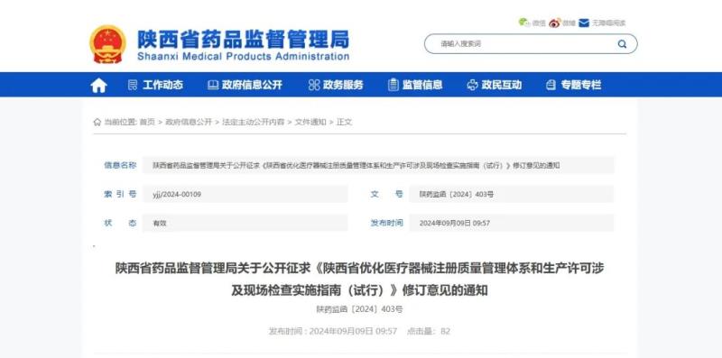 近日,陜西省藥監局對《陜西省優化醫療器械注冊質量管理體系和生產許可涉及現場檢查實施指南(試行)》(以下簡稱《指南》)進行修訂,并對修訂的內容公開征求意見和建議。
