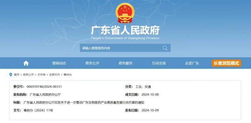 10月9日,廣東省人民政府發布《關于進一步推動廣東生物醫藥產業高質量發展的行動方案》(以下簡稱《方案》),其中提到,力爭到2027年,廣東省生物醫藥與健康產業集群規模超萬億元,規上醫藥工業規模超5000億元。《方案》全文內容如下: