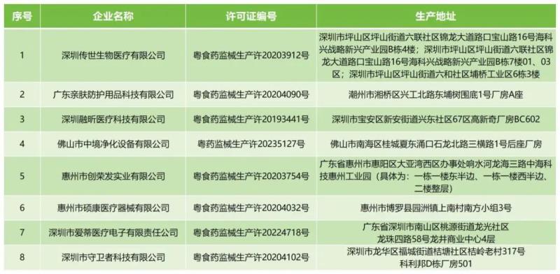 10月9日,廣東藥監局發布通告稱,按照《醫療器械監督管理條例》《醫療器械生產監督管理辦法》有關規定,根據企業申請,該局已于依法注銷深圳傳世生物醫療有限公司、惠州市創榮發實業有限公司、深圳市愛蒂醫療電子有限責任公司等8家企業的《醫療器械生產許可證》,具體明細如下:
