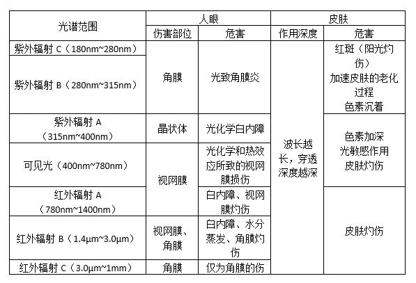 優先確定光波段,還有一個重要意義,就是不同的光譜范圍對于人眼和皮膚的危害是不同的,在進行光輻射安全分類測試時,不同波段的發射有著不同的發射限值,這在測試和數據處理中要尤為注意。
