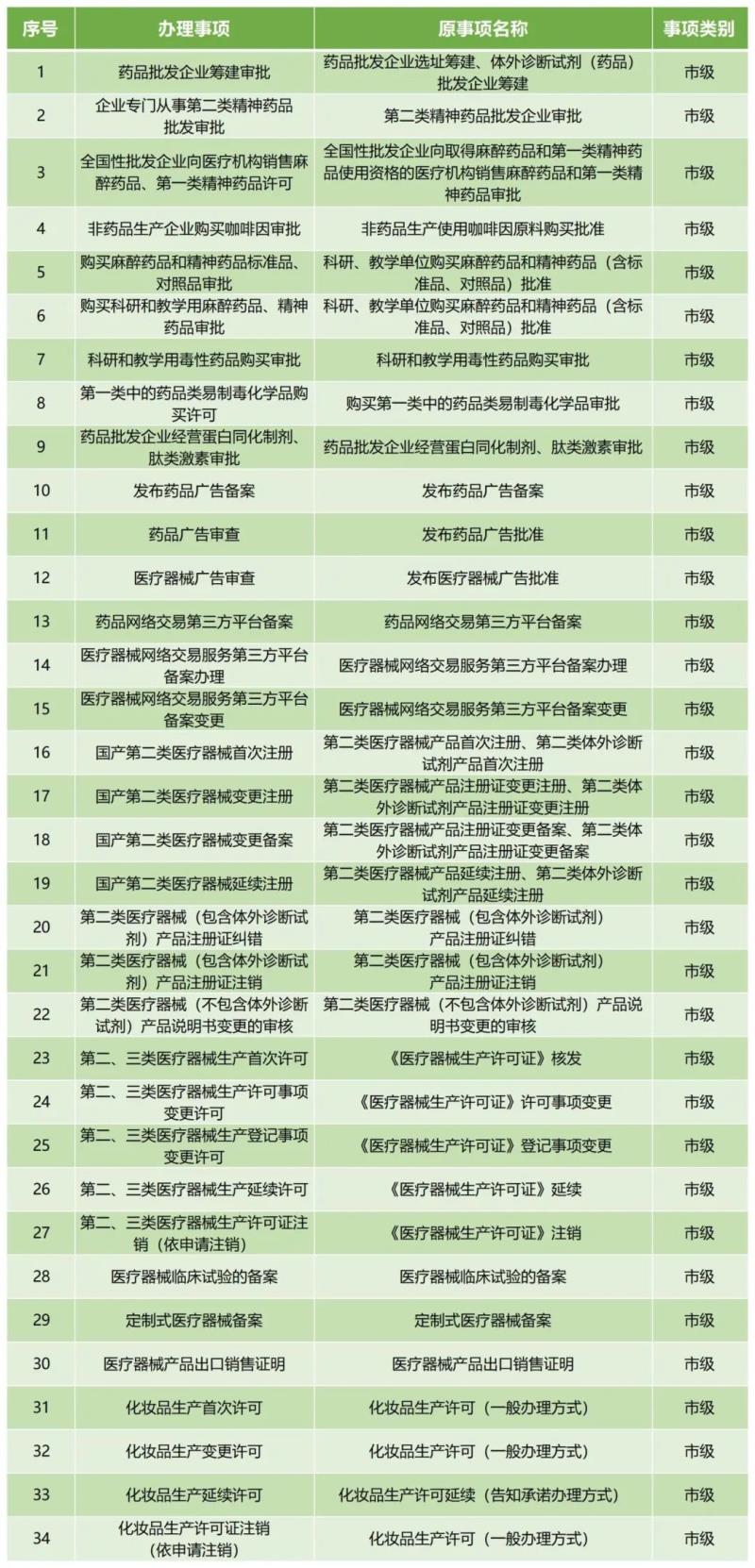11月6日,北京市藥監局發布通告稱,2024年11月1日起,國產第二類醫療器械首次/變更/延續注冊、第二、三類醫療器械生產首次/延續許可、化妝品生產首次/變更/延續許可等34個行政許可及備案事項(詳見下方表格)使用新版許可系統辦理。上述事項的原申報入口同步關閉。