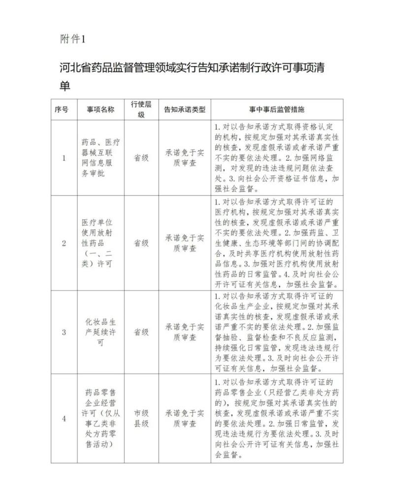 河北藥監局:以下4項行政許可事項實行告知承諾制