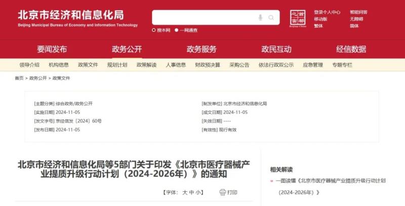 近日,北京市經(jīng)濟(jì)和信息化局、北京市藥品監(jiān)督管理局等5部門聯(lián)合制定了《北京市醫(yī)療器械產(chǎn)業(yè)提質(zhì)升級行動(dòng)計(jì)劃(2024-2026年)》(以下簡稱《行動(dòng)計(jì)劃》),并予以發(fā)布。