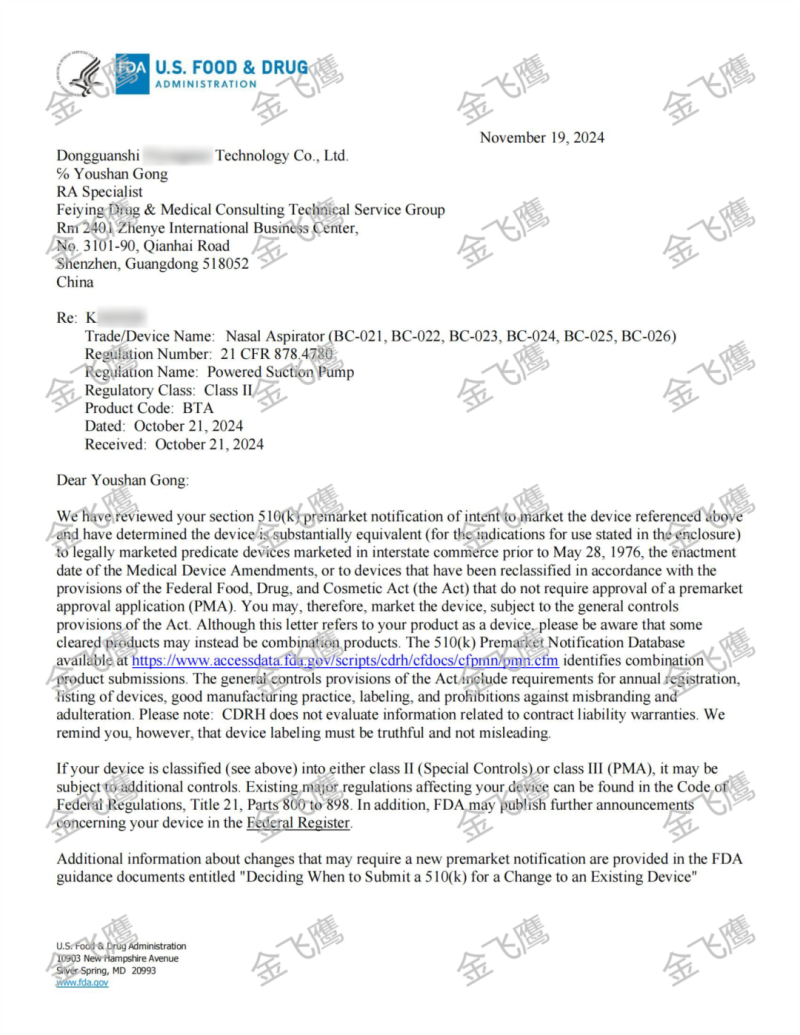 作為一家專注于 國內外醫療器械注冊咨詢的專業機構 我們一直以來都是“實干型” 不愛過分宣揚自己的實力 但是我們也清楚 只有拿出鮮活的案例 才有足夠的說服力 不定期的案例宣傳 既能展示我們的業務范圍 也是實力的最好印證 那么,既然屏幕前的您 已經了解到了咱們的實力 還等什么? 有國內外醫療器械注冊需求 歡迎隨時聯系我們咨詢? 金飛鷹是國內領先的醫療器械一站式注冊認證咨詢與軟件開發管理綜合性服務集團公司,成立于2007年。集團總部位于深圳南山,并先后在廣州、四川、湖南、江蘇、廣西、湖北、重慶等多地設立分支機構及辦事處。 集團以“誠信、務實、專業、專注”的服務理念,為國內&國外醫療器械研發者、生產者、經營者、使用者提供從產品立項、設計開發、廠房選址、廠房平面布局規劃、潔凈廠房設計規劃、企業硬件配置、設備選型、配置到人力資源組建、產品技術要求制定、檢驗檢測輔導跟蹤、臨床評價、臨床試驗、質量管理體系(GMP、GSP、GB/T 42061、ISO 13485、QSR 820、MDSAP多國認證等)建立、運行、審核、獲證的“全方位、一站式”醫療器械產業專業解決方案。 金飛鷹在美容類醫療器械產品領域積累了豐富的國內外注冊/認證輔導經驗,主要包括有源產品中的激光、強脈沖光(IPL、DPL、牛奶光)、紅藍紫光、RF射頻、超聲、中低頻電刺激及電子助推裝置類等;無源產品中的醫用重組型膠原蛋白、透明質酸納、無針注射器、液體成膜敷料類等;服務區域包括國內注冊/進口注冊,美國FDA、歐盟CE認證、英國UKCA、加拿大MDL/MDEL、澳大利亞、巴西、沙特、日本、韓國、東南亞等國外注冊。