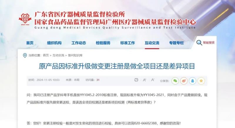 隨著科學技術的進步和臨床應用經驗的積累,醫療器械標準也在不斷更新中,因此,為適應新標而做變更注冊的情形十分常見,那么假如一款產品因標準升級需要做變更注冊,送檢時應選全項目檢測還是差異項目檢測(新舊標準差異條款)?