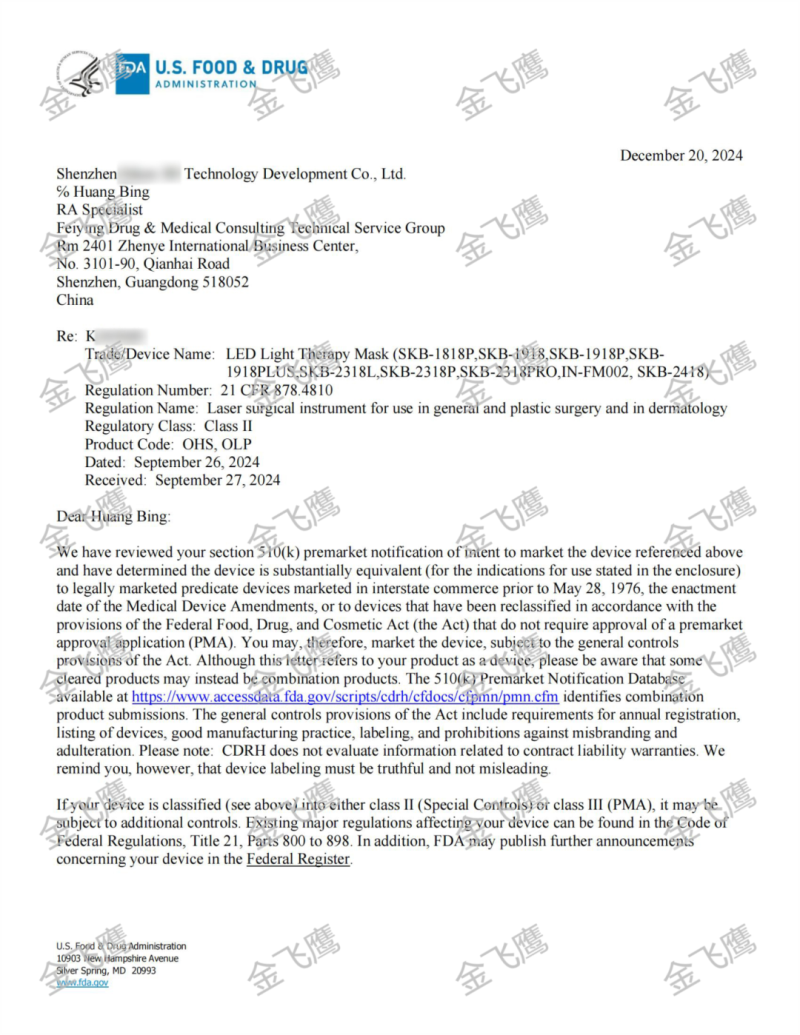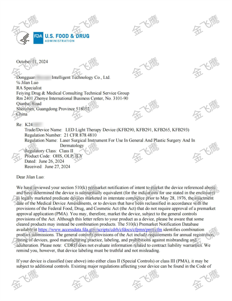 捷報頻傳丨金飛鷹成功輔導企業獲批紅藍光面罩510(k)
