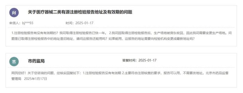 根據北京市藥監(jiān)局的答復,1、注冊檢驗報告沒有有效期;2、只要符合注冊核查的要求,檢驗報告可以用,不需要改地址。