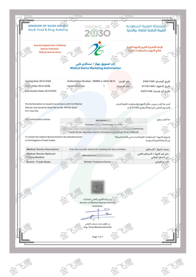 金飛鷹成功輔導深圳一家企業取得美容面罩的沙特上市許可