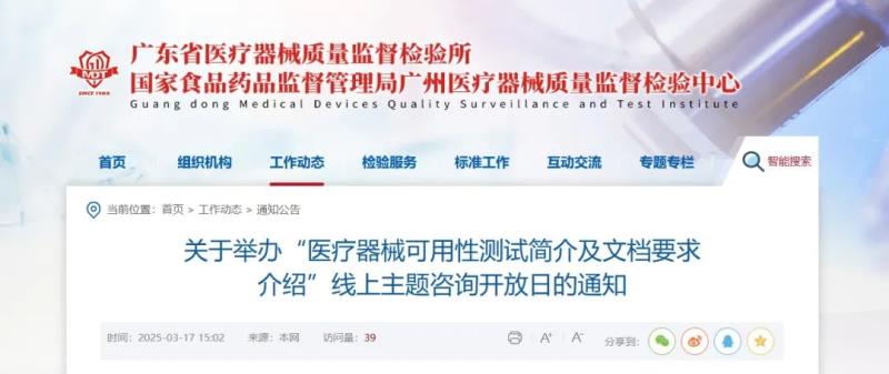 3月17日,廣東省醫(yī)療器械質(zhì)量監(jiān)督檢驗(yàn)所官網(wǎng)發(fā)布通知稱,定于3月21日(周五)舉辦“醫(yī)療器械可用性測試簡介及文檔要求介紹”線上主題咨詢開放日活動(dòng),具體時(shí)間及參會(huì)方式如下: