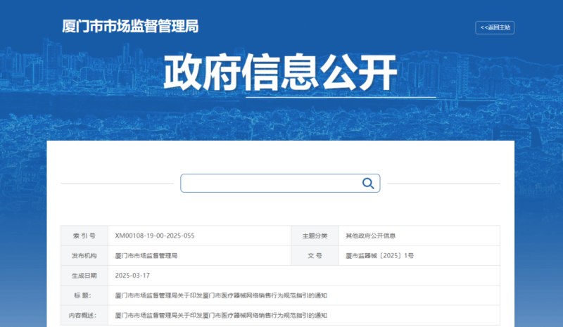 近日,廈門市市場監督管理局發布《廈門市醫療器械網絡銷售行為規范指引》(以下簡稱《指引》),以貫徹落實醫療器械網絡銷售常態化監管要求,引導醫療器械網絡銷售經營者加強合規管理,保證醫療器械在網絡銷售環節的質量安全。《指引》全文如下:
